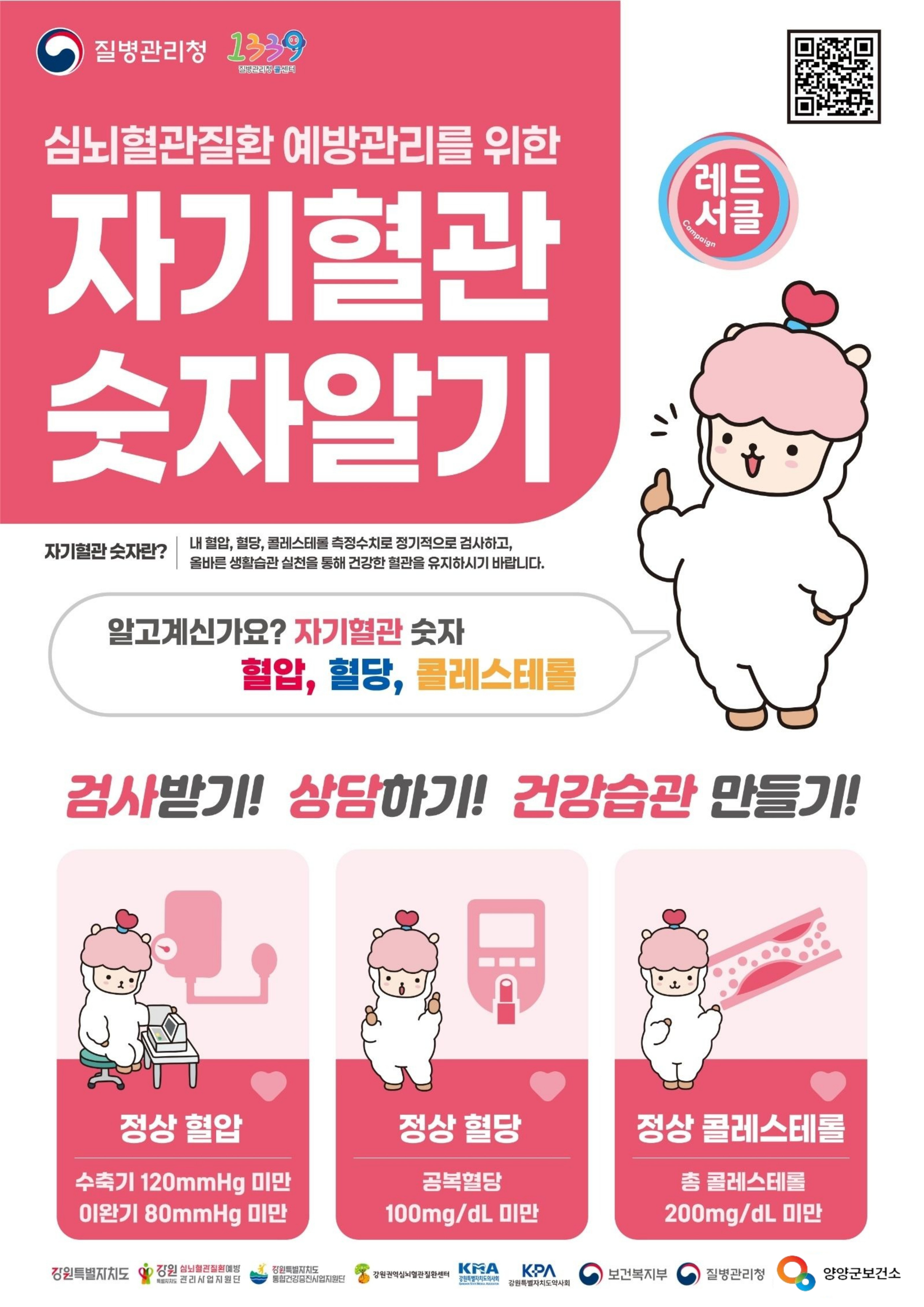 양양군은 심뇌혈관질환 예방관리주간을 맞아 ‘자기혈관 숫자알기 레드서클 캠페인’을 실시한다고 밝혔다.